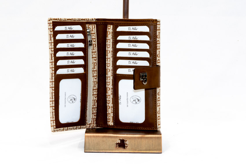 Cartera billetera de mujer con departamentos para tarjetas, documentación y monedero exterior cerrado con solapa.