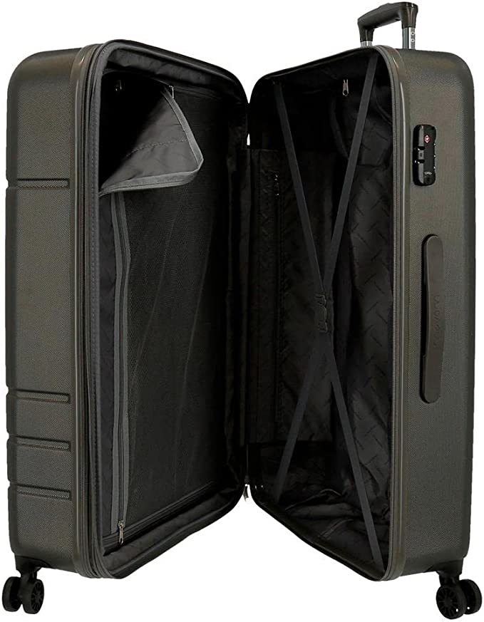 Equipaje de la colección Galaxy de Movom en ABS. Deslizar las maletas con sus cuatro ruedas dobles de giro multidireccional será comodísimo y tus pertenencias irán seguras con su cierre de combinación lateral TSA. Práctico interior con un compartimento con cremallera en uno de los lados y gomas elásticas de sujeción en el otro.